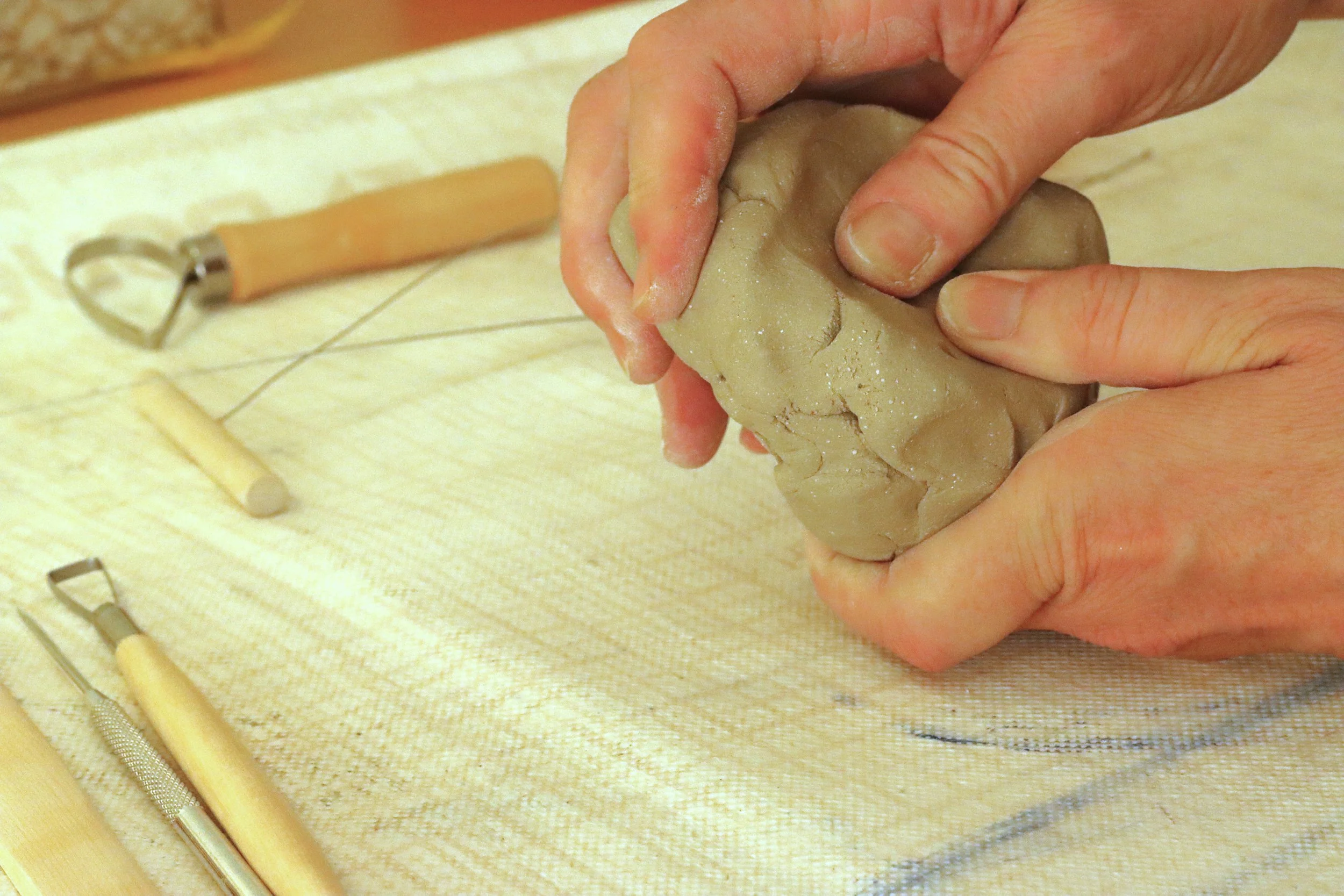 Ton in den Händen bewegen und eine Form entstehen lassen.
